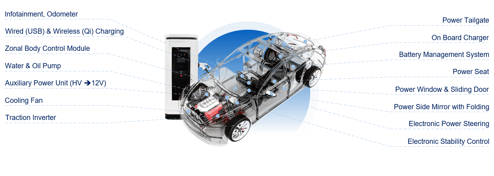 汽車應用從有刷電機到無刷電機,車用照明大量使用 LED 照明的轉變,汽車也越來越電動化,智能化,催生極大功率器件的需求。捷捷微電 順應這一趨勢,車規(guī)級產品持續(xù)聚焦在汽車三電(電池,電源及電機),車身照明及智能出行 (ADAS, Telematics and Infotainment systems, etc.) 等應用。 車規(guī)級 MOSFET 產品布局先進封裝的基礎上,盡量降低導通內阻的同時,能額外降低器件結電容效應,減少 Qg,進而提供較高的工作效率,減少發(fā)熱,提供兼容市面主流應用先進封裝架構的高可靠性車規(guī)級產品。 車規(guī)級 TVS 采用獨特的 CLIP 結構,相對于傳統(tǒng)的 A+B 結構,可以避免虛焊,減少芯片應力,提供高可靠性。針對電源及電機開關當中可能出現的瞬態(tài)浪涌及各種干擾,捷捷微電 車規(guī)級二極管 (TVS、ESD、穩(wěn)壓/續(xù)流二極管) 可以提供良好的高可靠性保護。在性能上實現卓越的鉗位能力、漏電流小、快速的響應速度,滿足 AEC-Q101 Rev-E 等級規(guī)范。