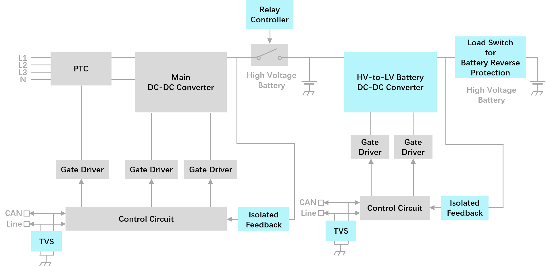 電網(wǎng)中的交流電通過交流充電樁直接給車載充電器 (OBC) 供電,OBC 把 AC 轉(zhuǎn)換成 DC,然后通過配電箱為車內(nèi)的動力電池充電。直流充電樁則包含許多 AC-DC 電源模塊。從目前充電樁市場的狀況來看,有 3 大趨勢:寬范圍的恒定功率、寬范圍的輸出電壓、更高功率的模塊。 兩個主要功率級。首先,功率因素校正 (PFC) 級,保持輸入電流和電壓之間的相位關(guān)系,最大限度地減少線路/電網(wǎng)電流的總諧波失真 (THD) 。這有助于減少任何浪費的無功功率,提高整體能效。 第二功率級是 DC-DC 轉(zhuǎn)換器,它從 PFC 級獲得 DC 輸出,并將其轉(zhuǎn)換為電池充電所需的電平。轉(zhuǎn)換器的輸出電壓和電流基于電池的整體健康狀態(tài)和充電狀態(tài)隨時間變化。 不論是功率因數(shù)校正(PFC)、原邊側(cè) DC-DC、或二次整流,捷捷微電都具有相應的解決方案,汽車系列產(chǎn)品涵蓋二極管、MOSFET、TVS 等各類產(chǎn)品。比如:整流+LLC 構(gòu)成了充電樁的基本電路,可采用 FRED(快恢復二極管)方案;CAN 通訊口的 ESD 保護。